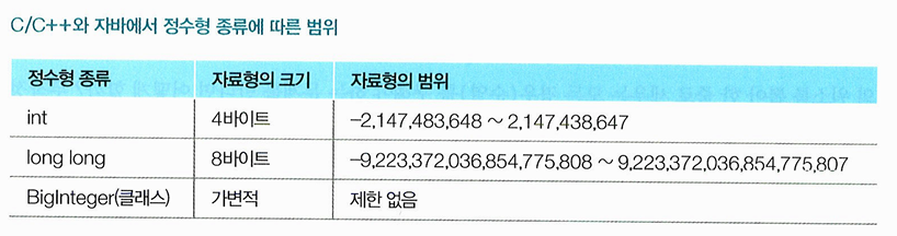 보통 int 자료형을 다룰 때 다음 범위보다 큰 수가 존재할 경우 이를 다룰 수 없기 때문에 고려하여 코드를 구현해야 한다.